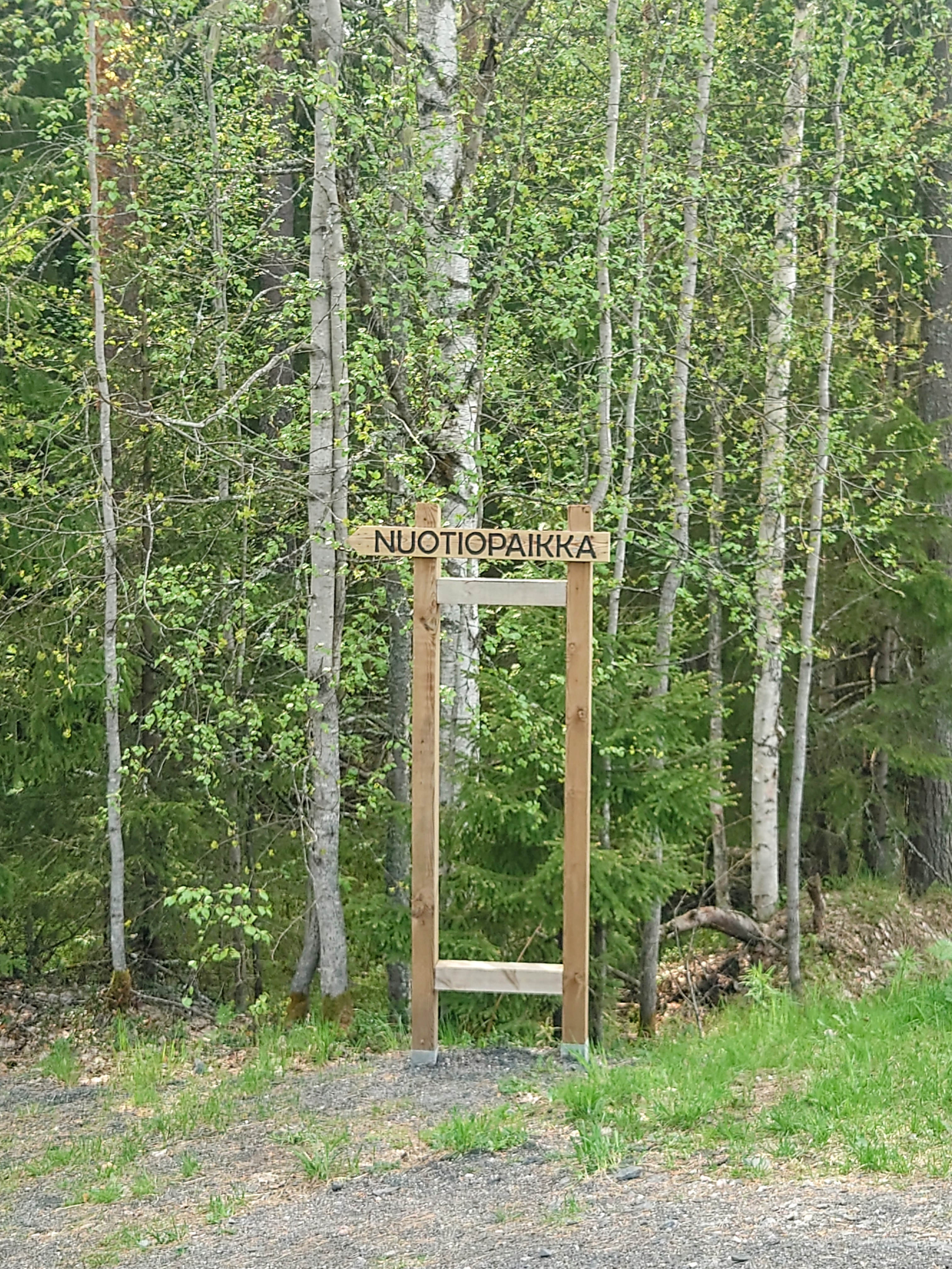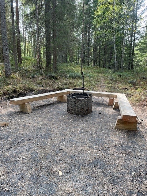 - Reitit ja pohjatyöt on valmiina. Nuotiokehä ja penkit rakennetaan syksyn aikana.