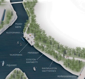 {"body":{"fi":"Toteutetaan uusi pienimuotoinen taukopaikka Mustasalmen suulle palvelemaan niin jalan kuin meloen liikkuvia: pieni rantautumislaituri, nuotio- ja istuskelupaikka. Esteetön ja helposti saavutettava kohde toimisi myös Hietasaaren kierrosta täydentävänä. \n\nIdea esitetty jo suistokaupunkivisiossa vuonna 2019\nhttps://www.ouka.fi/media/8035/download"},"title":{"fi":"Taukopaikka Mustasalmen suulle"}}