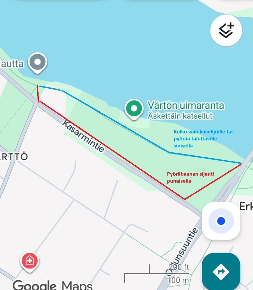 Muutoksia Värtön uimarannan kevyenliikenteenväylälle